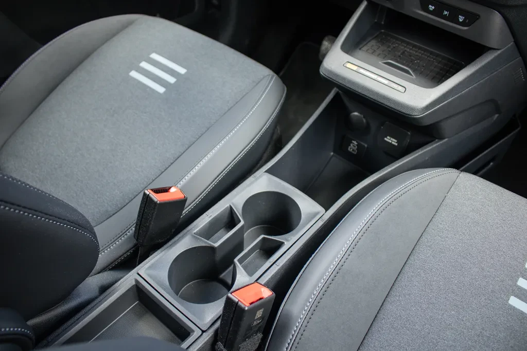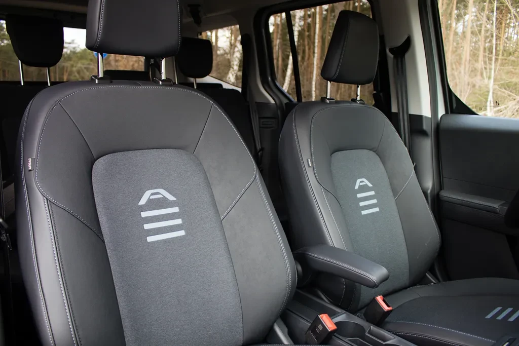 Z przodu sytuacja wygląda lepiej. Fotele są wygodne i oferują szeroki zakres regulacji, choć brakuje im podparcia lędźwiowego, a trzymanie boczne jest raczej symboliczne. Nie stanowi to jednak większego problemu — to auto stworzone głównie do jazdy miejskiej i podmiejskiej, gdzie takie kompromisy są w pełni akceptowalne. W tych warunkach siedzenia sprawdzają się po prostu dobrze.