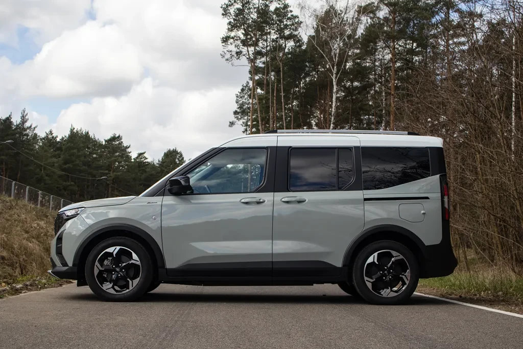 Różnic nie ma wiele, ale w tym przypadku nie jest to problem. Ford E-Tourneo Courier to po prostu bardzo dobrze narysowany samochód. Szczególnie dobrze wygląda w dwukolorowym nadwoziu — wtedy naprawdę potrafi przyciągnąć uwagę.