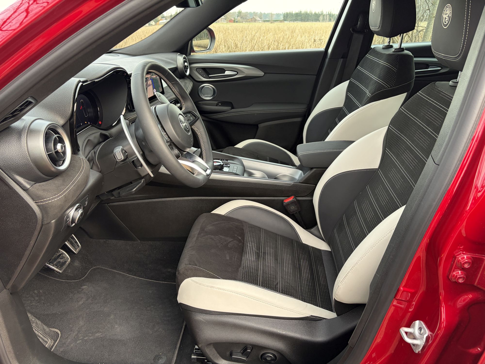 Czy to poziom sportowej Giulii Quadrifoglio? Bądźmy dorośli, oczywiście, iż nie. To przez cały czas dość ciężki crossover z wyżej umieszczonym środkiem ciężkości. Przy agresywnych zmianach kierunku fizyki po prostu nie oszukasz – masa daje o sobie znać. Ale na tle wielu mdłych i bezpłciowych rywali w tym segmencie, układ jezdny Alfy wciąż sprawia dużą frajdę z jazdy. To nie jest tylko narzędzie transportowe, czuć w nim chęć do zabawy.